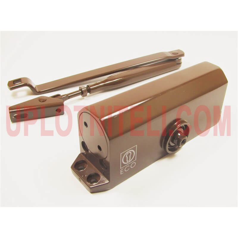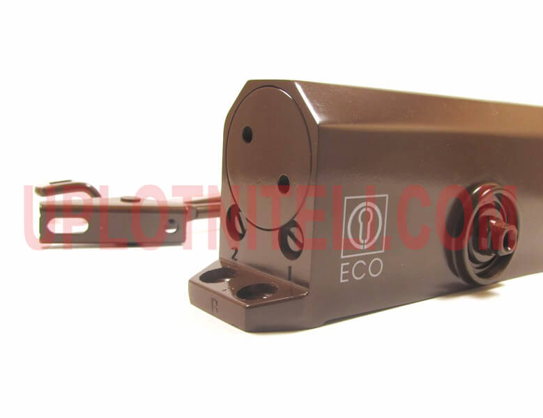 Доводчик дверей Eco-Schulte TS 10 для одностулкових і двостулкових конструкцій встановлюється на верхню частину дверей традиційно з боку петель або на зворотну раму. Можна виставляти необхідну швидкість ходу дверей, також використовується функція дохлопу.