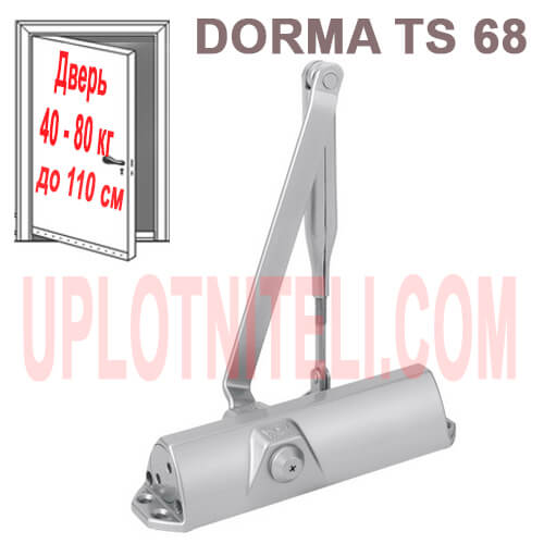 Доводчик TS 68 – это экономичная разработка фирмы DORMA. Он может использоваться на любых типах дверей: как левосторонних, так и правосторонних, весом до 80 кг. Монтируется без монтажной пластины быстро и просто. Настройка усилия закрывания EN 2-3-4 на размеры дверей производится с помощью рычага и изменения монтажных размеров. Это довольно популярная в Украине модель, поскольку она охватывает по своим характеристикам абсолютное большинство пластиковых, деревянных, алюминиевых и металлических дверей.