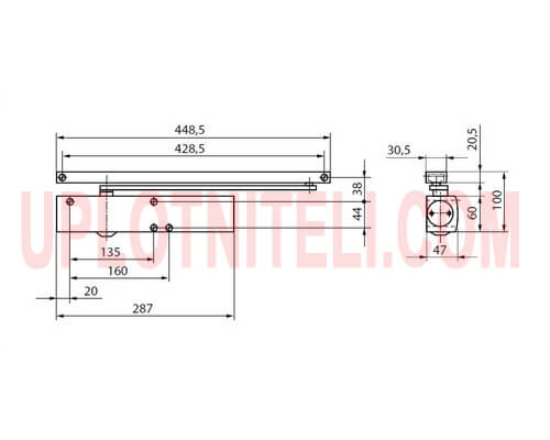 У нас також є варіант цієї моделі з тягою і фіксацією відкритого положення в діапазон від (70 до 150 *) – може бути корисним, якщо двері активно використовуються. Також у всіх випадках передбачено так зване вітрове гальмо, або дохло в останній фазі закривання.