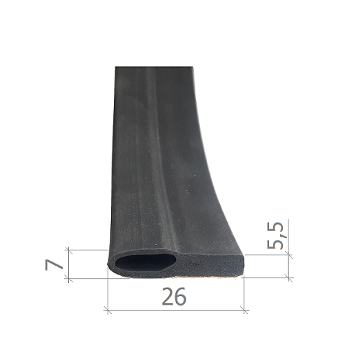 Самоклений ущільнювач 26х7 мм Застосовується у дверних конструкціях, в металічних, дерев’яних та комбінованих дверях. Гумова стрічка із спіненого каучуку (EPDM) Застосовується в місцях привору полотна до коробки дверей. Гумовий самоклеючий ущільнювач складається з двох частин: еластичної повітряної камери 12х7 мм і щільної смуги 14х5,5 мм. Зверніть увагу, що клеючий шар розташований тільки під щільною смугою і його ширина близько 13 мм. Повітряна камера легко стискається та ущільнює щілину від 6 до 2,5 мм. Друга частина, щільна смуга гумової стрічки, стискується із зусиллям від 5,5 до 3 мм. Купити самоклеючий ущільнювач можна на нашому сайті. Він готовий до застосування, достатньо зняти захисну плівку і приклеїти до твердої, рівної поверхні.